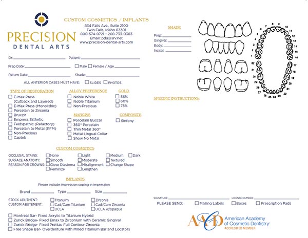 To help serve you better, we have put together a checklist of the items needed to complete a cosmetic or large restorative case.