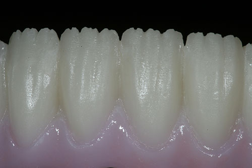 Prettau Zirconia comes into a world of its own especially in the field of implant dentistry, in cases of limited available space or restorations with tissue flanges. One of the many advantages is the complete elimination of posterior occlusal chipping because only the labial or buccal surfaces are porcelain veneered; all functional areas are maintained as solid Prettau Zirconia.