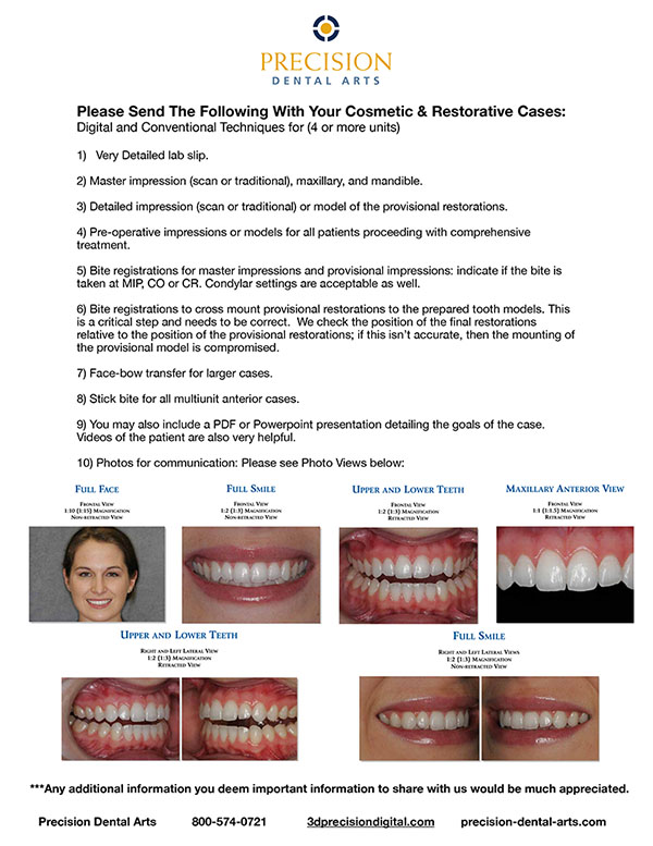 To help serve you better, we have put together a checklist of the items needed to complete a cosmetic or large restorative case.